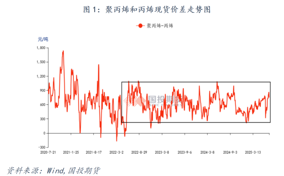 当前我国丙烯产能在7627万吨/年,20年以上(包含20年)的装置产能在1118万吨/年,占丙烯全部产能的比例为14.66%。丙烯作为重要的化工原料,发展历程比较久远,老旧装置也相对较多。并且,这几年随着丙烯新建装置快速扩张,行业盈利下滑明显,呈现了结构性过剩的状态,行业产能优化成为必然的趋势。鉴于丙烯行业老旧装置较多的现状,宏观消息引发市场对于丙烯行业淘汰落后产能的强烈预期,对于市场的提振作用明显,期货上市首日即呈现大幅高开收涨的局面,预计短期行情偏强运行。但目前尚在产能摸底阶段,具体的政策并未出台,现实层面,丙烯供需结构失衡,目前处于消费相对淡季,基本面难以跟进。从现货表现来看,山东地区丙烯主流价维持在6375元/吨,日内并未上涨,基差快速走扩至238元/吨。华东地区丙烯主流成交价小幅上涨至6500元/吨,基差在113元/吨,整体来看基差较大,现货市场受制于现实疲弱的基本面,价格跟涨乏力。