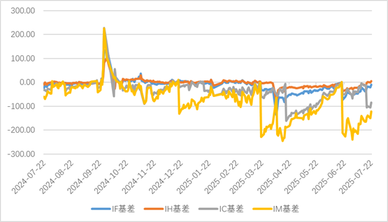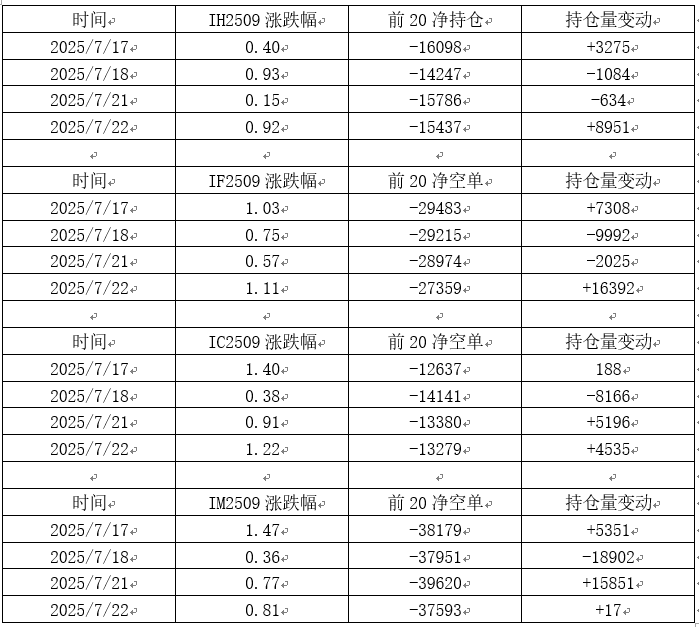 近期A股市场做多热情较高,股指持续走强。上证指数于6月24日强势站上3400点,随后在7月10日站上3500点,并不断走高。截至7月22日收盘,上证指数、深证成指、创业板指及四大宽基指数均录得四连阳,四期指亦呈现贴水收敛,净空单减少的态势。