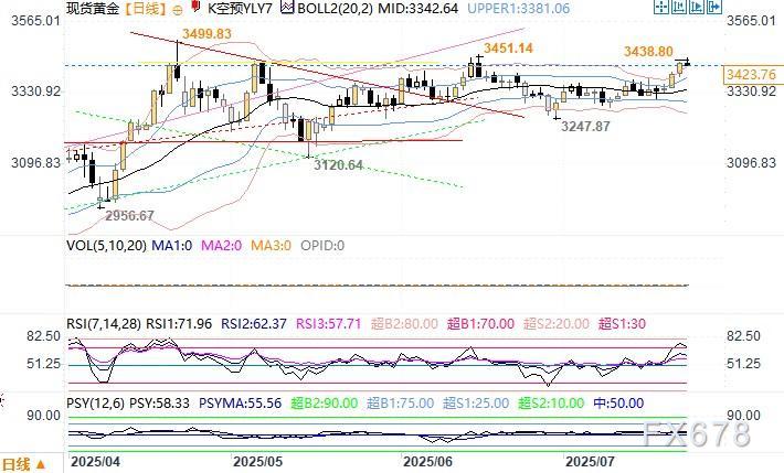 北京时间7月23日11:00 现货黄金 报 3423.76 美元/盎司