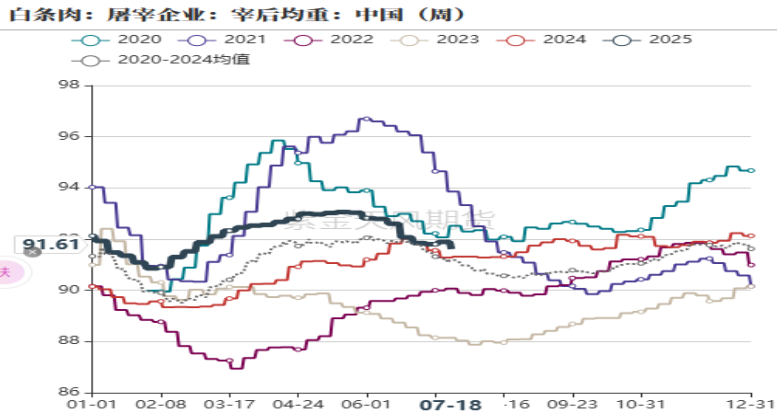 从出栏体重数据来看,7月中旬出栏体重以及宰后均重数据小幅下滑,这主要是6月大体重商品猪持续出售导致的出栏体重持续下降,7月出栏肥猪相对偏少,加上农业农村部限制集团企业压栏增重,因此出栏体重小幅下滑。