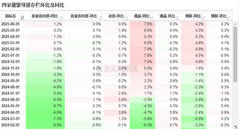 图5:农业农村部以及其他三家母猪存栏环比以及同比