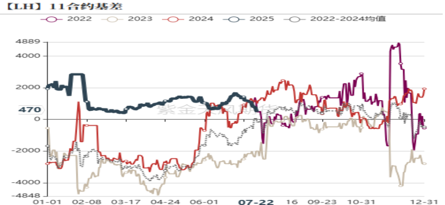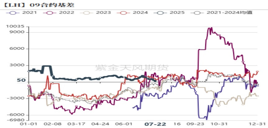 7月以来现货价格持续走低,但2509合约因需求旺季、政策性控体重以及宏观情绪带动等利多情绪支撑下,期货盘面震荡走高,若按最便宜地区的交割原则盘面已经出现较大幅度升水,若8月没有二育以及主动压栏节奏的配合,2509合约将略有高估。因按正常的出栏节奏,供需略偏宽松。
