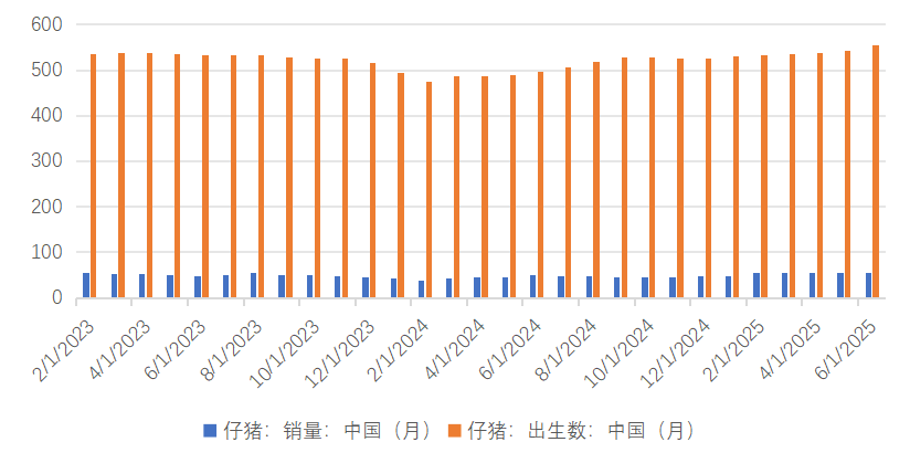 钢联样本企业调查数据显示,2025年6月仔猪出生量554万头,环比增加2%,同比增加11%。2025年6月出生的仔猪对应的是12月以及次年1月出栏的商品猪,从仔猪的环比增量来看,四季度可出售商品猪数量呈现环比增加的趋势。农业部数据显示从新生仔猪看,2025年1-5月我国新生仔猪数量也呈现连续环比递增的趋势,环比增幅分别为1.57%、0.60%、0.60%、1.80%、0.50%,而2024年12月-2025年5月全国新生仔猪数量比上年同期增长9.9%,按6个月育肥周期计算,今年6-11月份生猪出栏将逐渐增多。