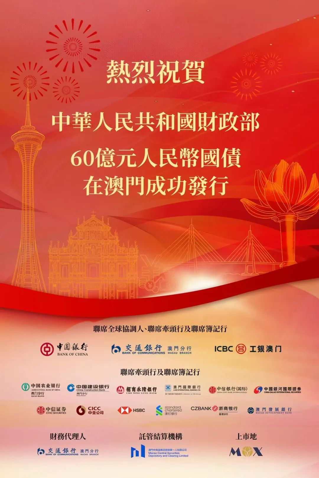 今年是财政部连续第四年在澳门成功发行人民币国债,是中央政府支持澳门加快培育债券市场等新金融业态、推动经济适度多元发展的重要体现。人民币国债在澳门的持续发行,有利于进一步完善常态化发行机制,拓展投资者基础并促进澳门离岸人民币市场的稳健发展。