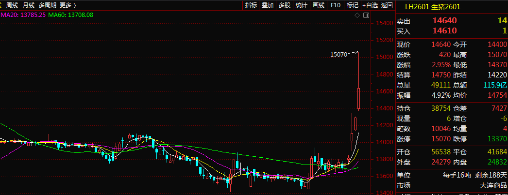 政策预期与“反内卷”共振 生猪期价一度涨停