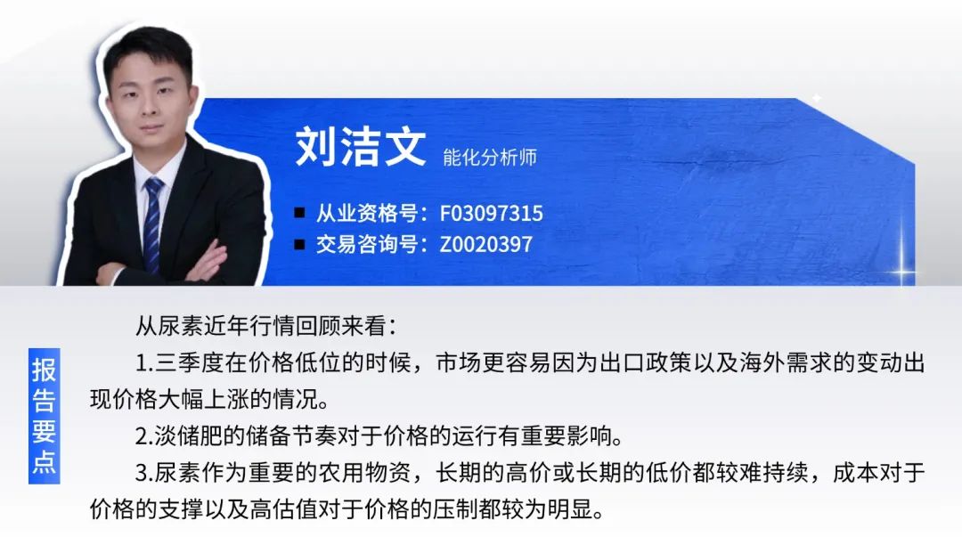 三季度对于尿素来说重点看出口表现,在价格低位且市场基本反应完绝大部分利空消息时往往出口总能带来行情的走高。