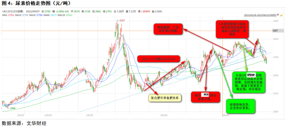 尿素估值偏高,与其他产品比价高位,上游开工维持在高位。下游终端走差,利润低位。整体表现为上游供应高位而下游整体需求偏弱。实际上尿素期货上市前尿素价格处于大级别下行周期,上市场期间推高价格,后续情绪回落,价格重回下跌。