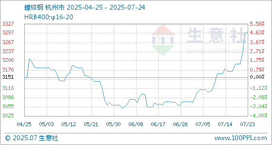 7月24日生意社螺纹钢基准价为3302.50元/吨