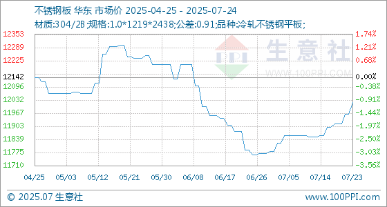 7月24日生意社不锈钢板基准价为12021.43元/吨