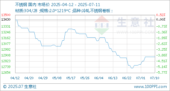 7月11日生意社不锈钢基准价为12887.50元/吨