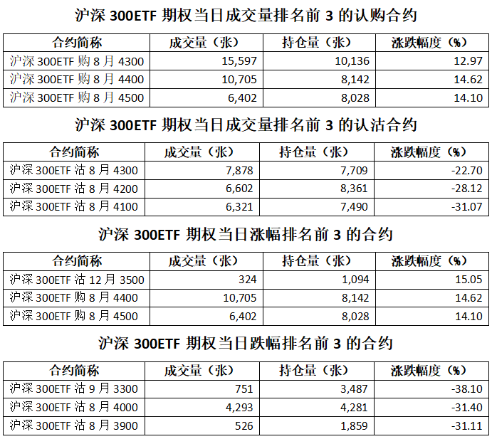 (7)行权日,到期合约不计入当日成交量排名和涨跌幅排名。
