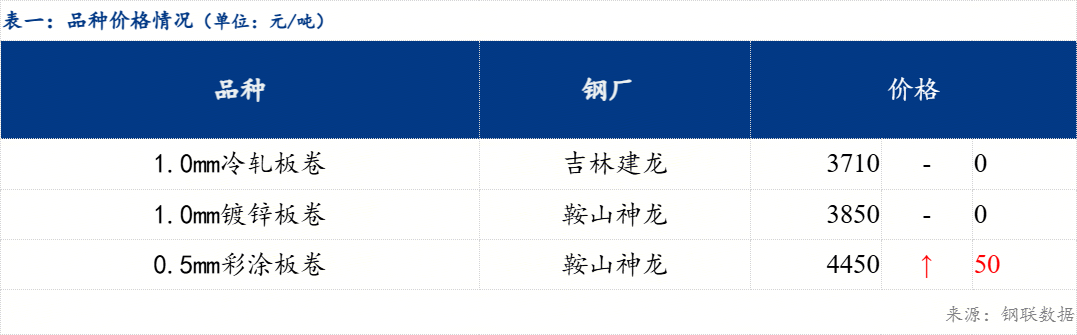 沈阳市场冷轧镀锌价格持稳运行,现东北主流市场冷轧板卷价格3710元/吨。镀锌板卷价格3850元/吨,彩涂板卷价格4450元/吨。具体来看,市场方面,今日热卷期货盘面震荡偏强运行,但现货市场报价持稳, 价格持稳运行,部分规格有暗降现象,市场交投氛围清淡,午后暂无改善,整体成交偏弱。 据反馈,7月份的消费多为传统淡季,供需双弱格局下,市场依旧不及预期,贸易商仍持谨慎观望态度为主。综合来看,预计下一交易日东北市场冷轧及镀锌板卷价格或以稳为主。