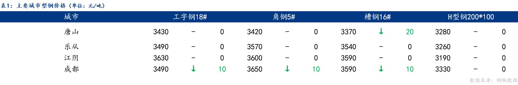 今日型钢价格持稳运行,唐山工字钢、角钢、H型钢价格较上一交易日持稳,槽钢价格较上一交易日下跌20元/吨;乐从、江阴工字钢、角钢、槽钢、H型钢价格较上一交易日持稳;成都工字钢、角钢、槽钢价格较上一交易日下跌10元/吨,H型钢价格较上一交易日持稳。