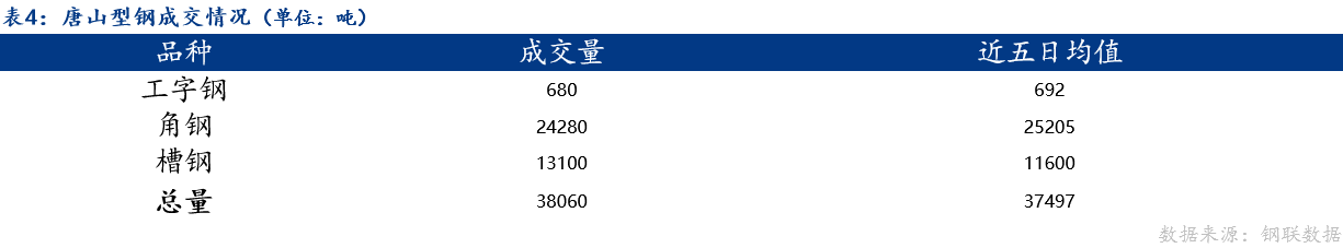 2、成交量为20家型钢厂当日成交,其中包括工字钢6家、角钢7家、槽钢7家。