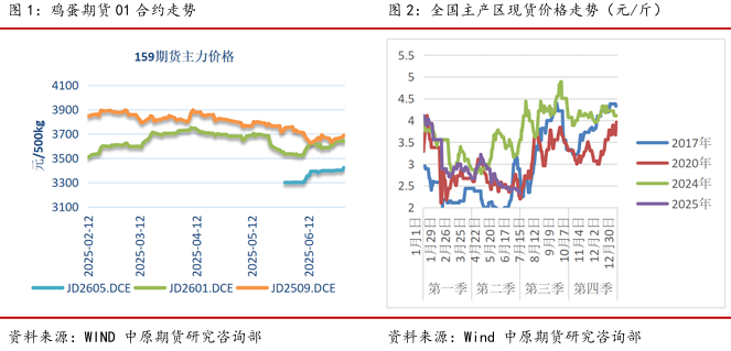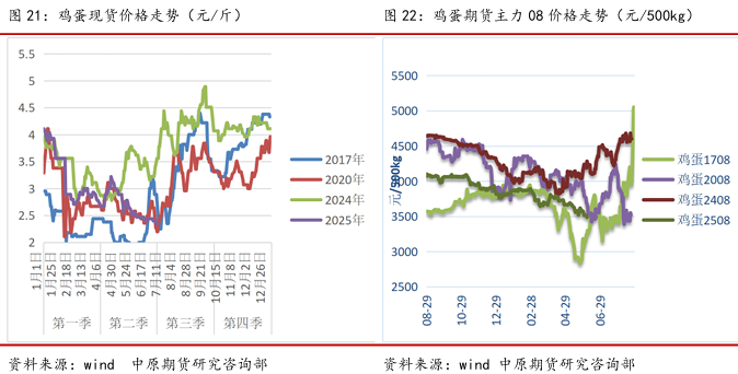 2025 年上半年现货,整体中性偏弱格局,从年初高位4元/斤开始下跌,4月初,出现一定反弹后,再度寻底,价格走势类似于2020走势,上半年在产能增加和天气影响共振下,价格不断寻底,触底时间相对于去年明显延迟,更多在反馈高产能带来带来的压力。我们认为,现货市场即将迎来季节性旺季,预计反弹高度在3.5-4元/斤区间。