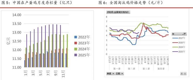 2025 年上半年,淘汰鸡价格高位运行,市场整体利润下滑,但是未进入亏损期,淘汰日龄 和淘汰量同比高位运行,市场淘汰不积极,整体延迟淘汰明显,进入二季度,整体养殖利润出 现亏损,淘汰开始提速,淘汰日龄回落明显,目前基本上回落到500天,淘汰价格明显回落至4 元/斤,但是按照目前整体的季节性价格走势,预计三季度,市场仍将进入短暂盈利期,延迟淘 汰明显,进入下半年,在再度进入亏损后,市场将进入加速淘汰期。