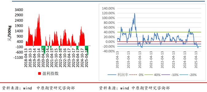 整体看,2025年上半年是供应压力不断显现,价格重心不断下 移,整体养殖利润进入深度亏损期,从大的产能周期角度,还是 从短的季节性周期角度,还是从产能变换的指标,期现货都已经 逼近了阶段性的低点,已经具备了中期的买入价值,建议开始重 点关注旺季合约7/8/9所有回调后的买入机会;期权方面,择机 根据波动情况选择买入虚值的看涨期权或卖出对应虚值看跌期 权;从价差关系角度,我们更加倾向于季节性旺季走完后的反套 操作。