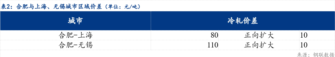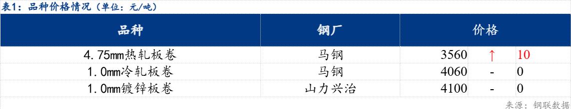 今日合肥-上海1.0mm马钢价差为80元/吨,较上一交易日扩大10元/吨 ;合肥-无锡1.0mm马钢价差为110元/吨,较上一交易日扩大10元/吨 ;品种价差方面:冷热价差500元/吨,较上一交易日收窄10元/吨。