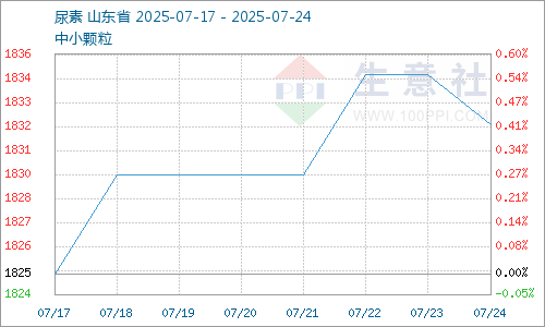 据生意社商品行情分析系统,截止7月24日,国内尿素市场参考均价为1832元/吨,较7月17日市场参考均价1825元/吨,本周国内尿素市场价格上涨幅度为0.41%。