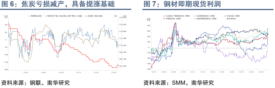 国家能源局针对超产煤矿的核查通知强化了市场对 “反内卷”的预期,“反内卷”的风正式吹到了煤炭行业。近期煤焦盘面暴力拉涨,带动投机锁货和刚需补库,煤焦上游库存快速去化,部分煤种资源紧张,矿山出现惜售情绪。成材期现投机需求叠加前期空单集中回补,强化了黑色“淡季不淡”效应,钢材现货利润不降反增,钢厂对涨价炉料的接受度提高,黑色产业链正反馈仍在持续,短期内煤焦盘面易涨难跌。中长期来看,煤焦钢等基础原料价格暴涨并不利于终端制造业平稳发展,需谨慎评估下游对涨价原料的承接能力。操作层面,政策敏感期避免逆势沽空,单边建议观望,套利可关注煤焦9-1月间反套。