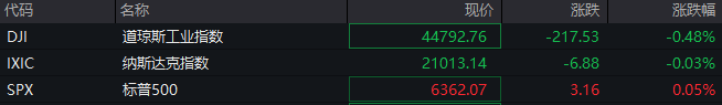 当地时间7月24日,美股三大指数开盘涨跌不一,截至发稿,道指跌0.48%,纳指跌0.03%,标普500指数涨0.05%。