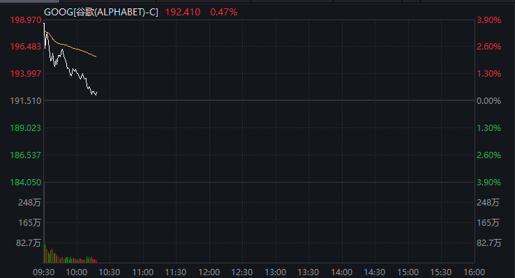 谷歌周四开盘后涨幅一度接近4%,目前收窄至不足1%。