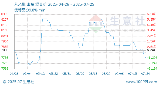 7月25日生意社苯乙烯基准价为7744.00元/吨