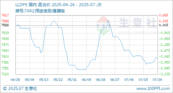 7月25日生意社LLDPE基准价为7401.67元/吨