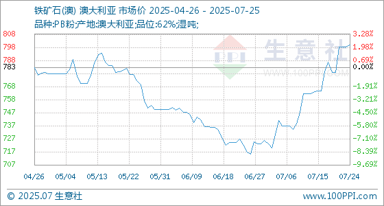 7月25日生意社铁矿石(澳)基准价为800.44元/吨