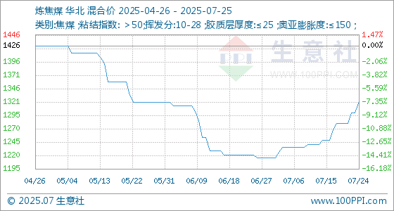 7月25日生意社炼焦煤基准价为1321.25元/吨