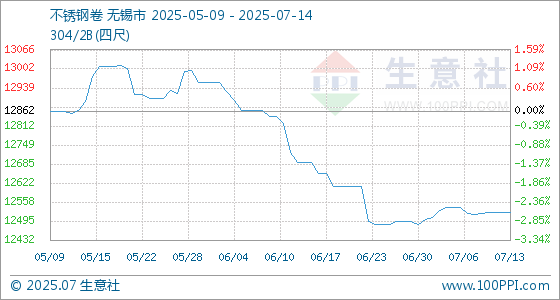7月14日生意社不锈钢卷基准价为12523.33元/吨