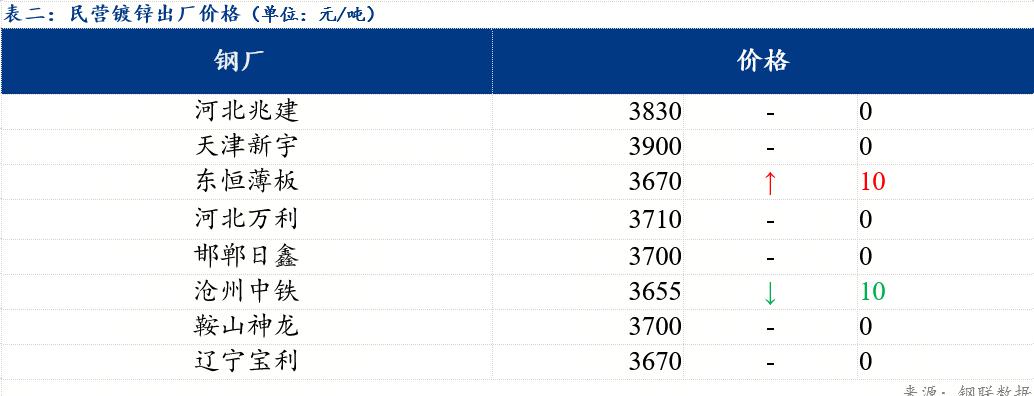 今日北方民营钢厂镀锌出厂指导价在3660元/吨-3900元/吨。