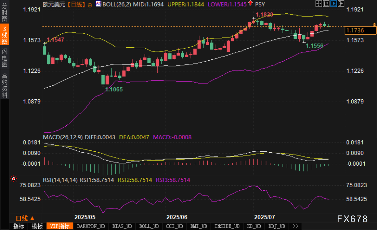 此外,据市场传言,欧盟与美国正在敲定一项贸易协议,其中涉及关税下调及部分商品豁免(如汽车、酒类等),若落实将有助于提振欧元中期前景。这些消息使得汇价在高位维持相对稳固的震荡格局。