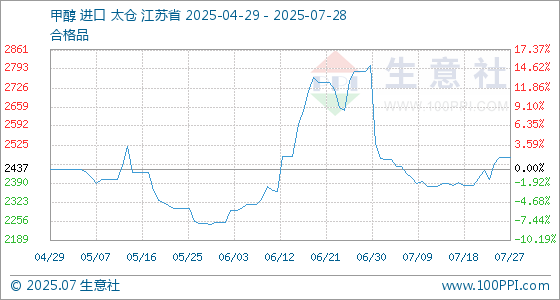 7月28日,生意社甲醇基准价为2481.67元/吨,与本月初(2805.00元/吨)相比,下降了11.53%。
