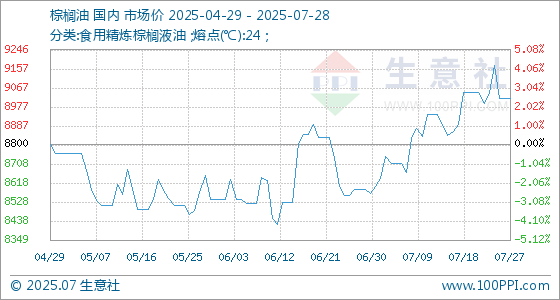 7月28日生意社棕榈油基准价为9016.00元/吨