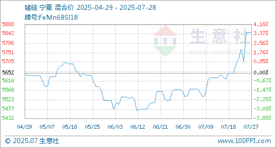 7月28日,生意社锰硅基准价为5850.00元/吨,与本月初(5564.00元/吨)相比,上涨了5.14%。