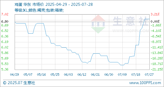 7月28日生意社鸡蛋基准价为6.88元/公斤