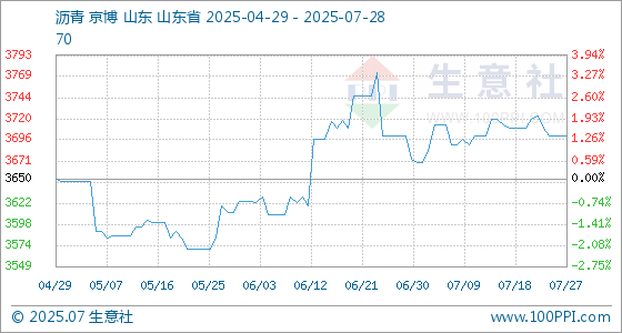7月28日,生意社沥青基准价为3700.00元/吨,与本月初(3673.33元/吨)相比,上涨了0.73%。