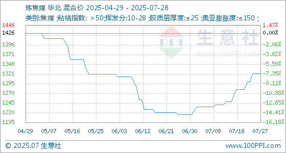 7月28日生意社炼焦煤基准价为1321.25元/吨