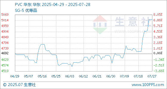 7月28日生意社PVC基准价为5024.00元/吨