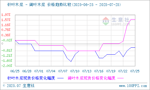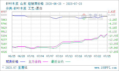 据生意社商品行情分析系统:上周针叶木浆和阔叶木浆价格均呈上行走势。截止7月25日,山东地区针叶木浆市场均价为5966.67元/吨,与7月20日均价相比上涨了0.56%;阔叶木浆市场均价为4133.33元/吨,与7月20日均价相比上涨了1.89%。