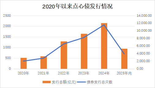 近年来,在我国无风险利率持续走低的背景下,点心债的发行规模不断增长。数据显示,2022年以来,点心债发行规模快速增长。2022年,全市场发行点心债1169只,发行规模为7283.85亿元;2023年全市场发行点心债的数量增加至1468只,发行规模增长至9251.11亿元;2024年全市场发行点心债的数量进一步增加至2062只,发行规模也进一步增长至12055.19亿元,首次年度发行规模破万亿。