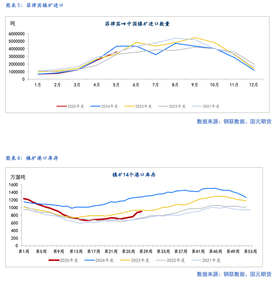 镍矿方面:印尼RKAB配额审批已达3.6亿,上半年使用量仅1.2亿,矿山为完成出矿指标,整体挺价心态或有所弱化。