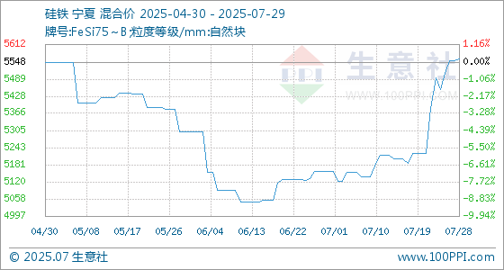 7月29日生意社硅铁基准价为5561.43元/吨
