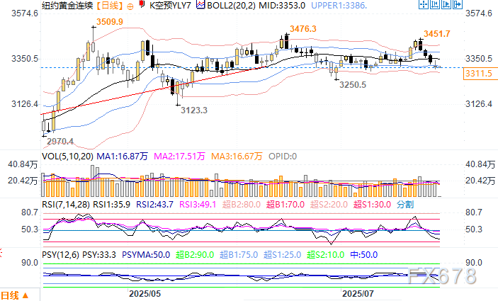 尽管美元明显走强,但黄金表现出了一些潜在的韧性。同日,虽然黄金期货下跌了24.50美元,收于3314美元,跌幅为0.73%,但相对于美元超过1%的升值,这一跌幅明显温和。这种分歧表明,尽管美元走强带来了具有挑战性的技术环境,但仍有战略买家愿意积累黄金仓位。周二(7月29日)亚市,金价窄幅震荡。