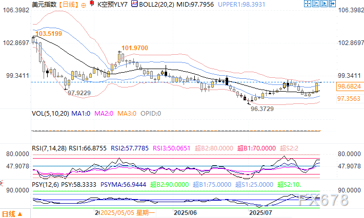 这些积极的贸易进展推动美元录得4月以来最大的单日涨幅,周一(7月28日)洲际交易所(ICE)美元指数飙升逾1%,至98.66的日内高点。美元的强势进一步受到货币政策预期的支撑,因为美联储即将召开的会议显示降息的可能性很小。根据美联储观察工具,市场参与者认为降息的可能性只有3.1%,96.9%的人预计利率保持不变。联邦公开市场委员会(FOMC)8月份不召开会议,这表明目前的高利率环境将至少持续到9月份的会议。