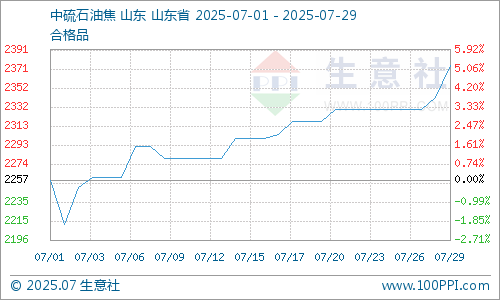 据生意社商品分析系统显示,近期地炼石油焦行情上涨,截止到7月29日山东市场地炼石油焦价格为2375.00元/吨,较7月21日2330.00元/吨上涨1.93%。
