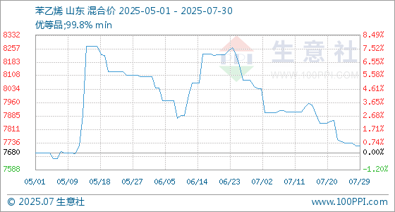 7月30日生意社苯乙烯基准价为7720.00元/吨