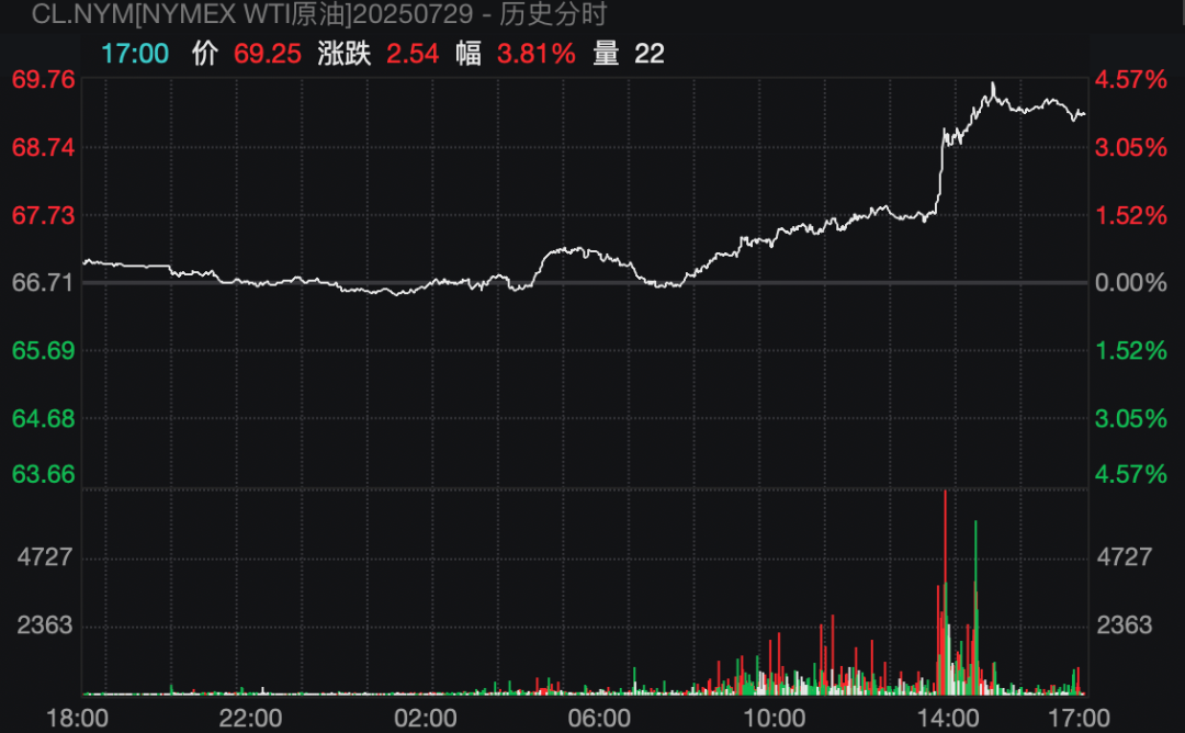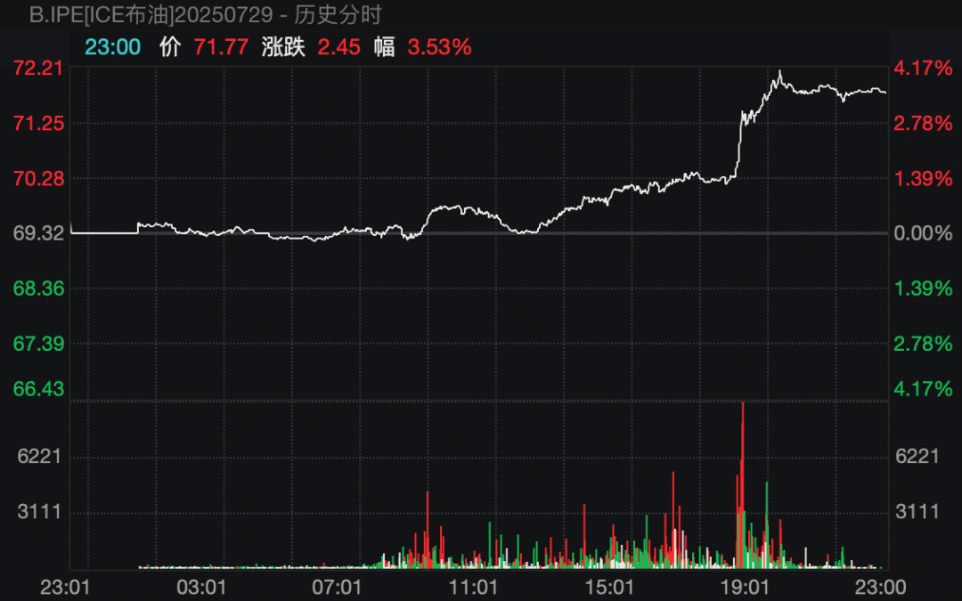 国际油价大涨。当地时间7月29日,美油、布油盘中涨幅均超过4%。
