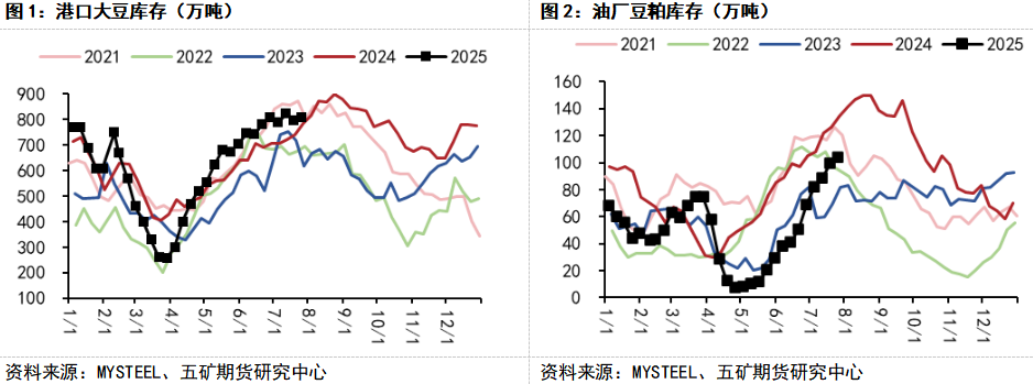 一、因提货较好国内大豆、豆粕库存可能在8月中旬见顶